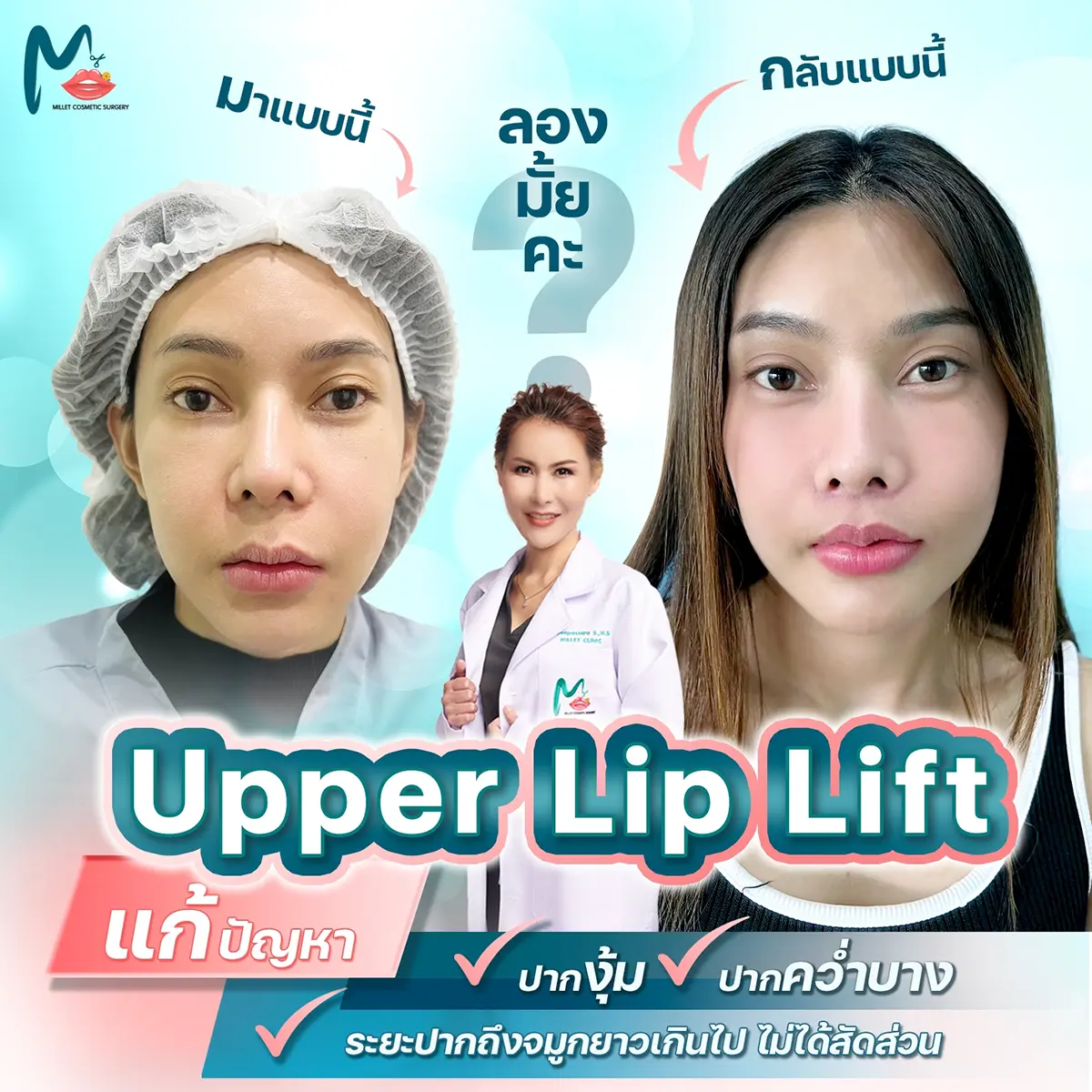ศัลยกรรม Upper lip lift หรือที่เรียกกันว่า การผ่าตัดยกริมฝีปากบน เป็นการผ่าตัดเพื่อปรับระยะห่างระหว่างฐานจมูกกับริมฝีปากบนให้มีสัดส่วนที่เหมาะสม เป็นการลดระยะระหว่างบริเวณฐานจมูกกับริมฝีปากบนให้แคบหรือสั้นลง ซึ่งหากระยะห่างของฐานจมูกกับริมฝีปากบนยาวเกินไป อาจจะส่งผลต่อบุคลิกได้ในที่สุด หลังทำแล้วริมฝีปากจะดูสวย อวบอิ่ม มีเสน่ห์ขึ้น