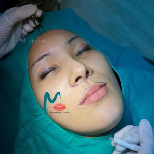 การผ่าตัดศัลยกรรมยกริมฝีปากโดยทั่วไปใช้เวลาประมาณ 1-2 ชั่วโมง แพทย์จะทำการผ่าตัดภายใต้การฉีดยาชาเฉพาะจุด ขั้นตอนการผ่าตัดมีดังนี้